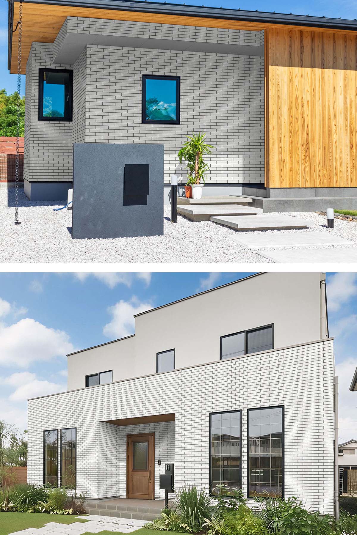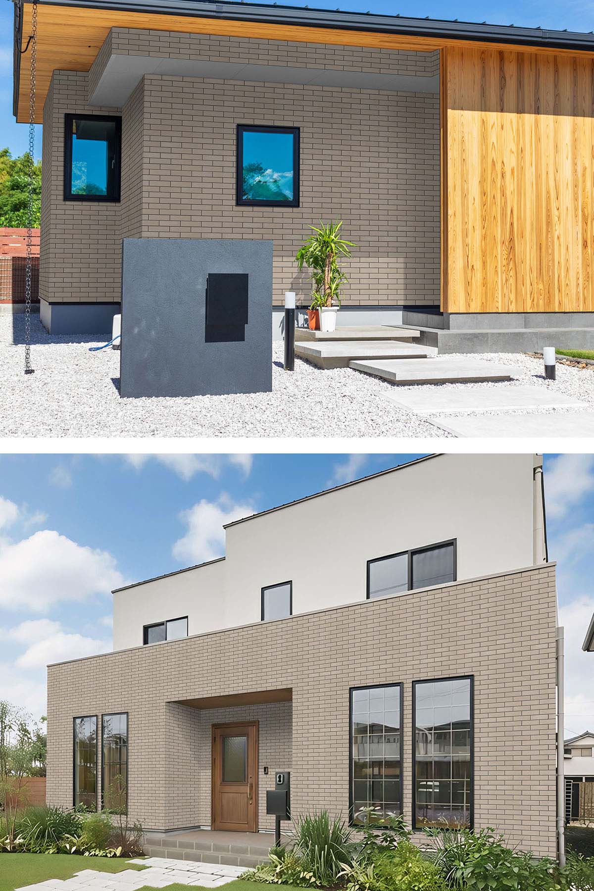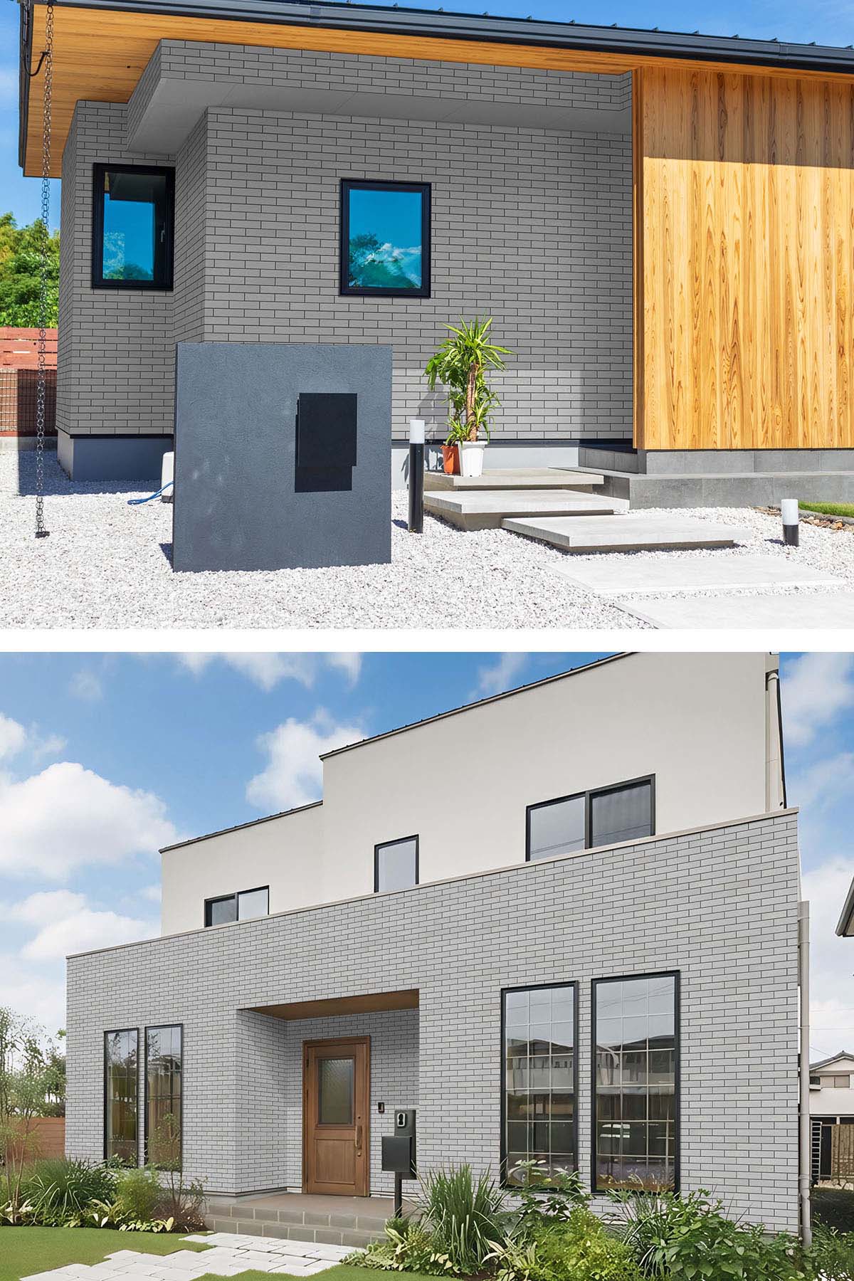2階から3階などのファサード部分に施工するとトレンドのくすみカラーと特徴的なレンガ張調で落ち着きながら印象的に仕上げることができます。